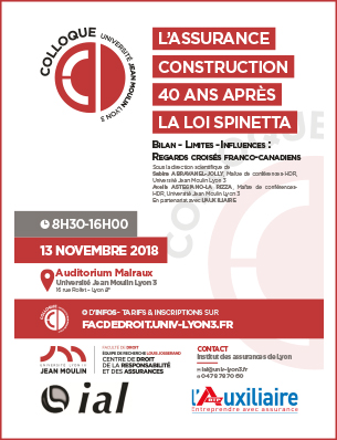 Colloque : "L’assurance construction 40 ans après la loi Spinetta | Bilan - limites - influences : regards croisés franco-canadiens"